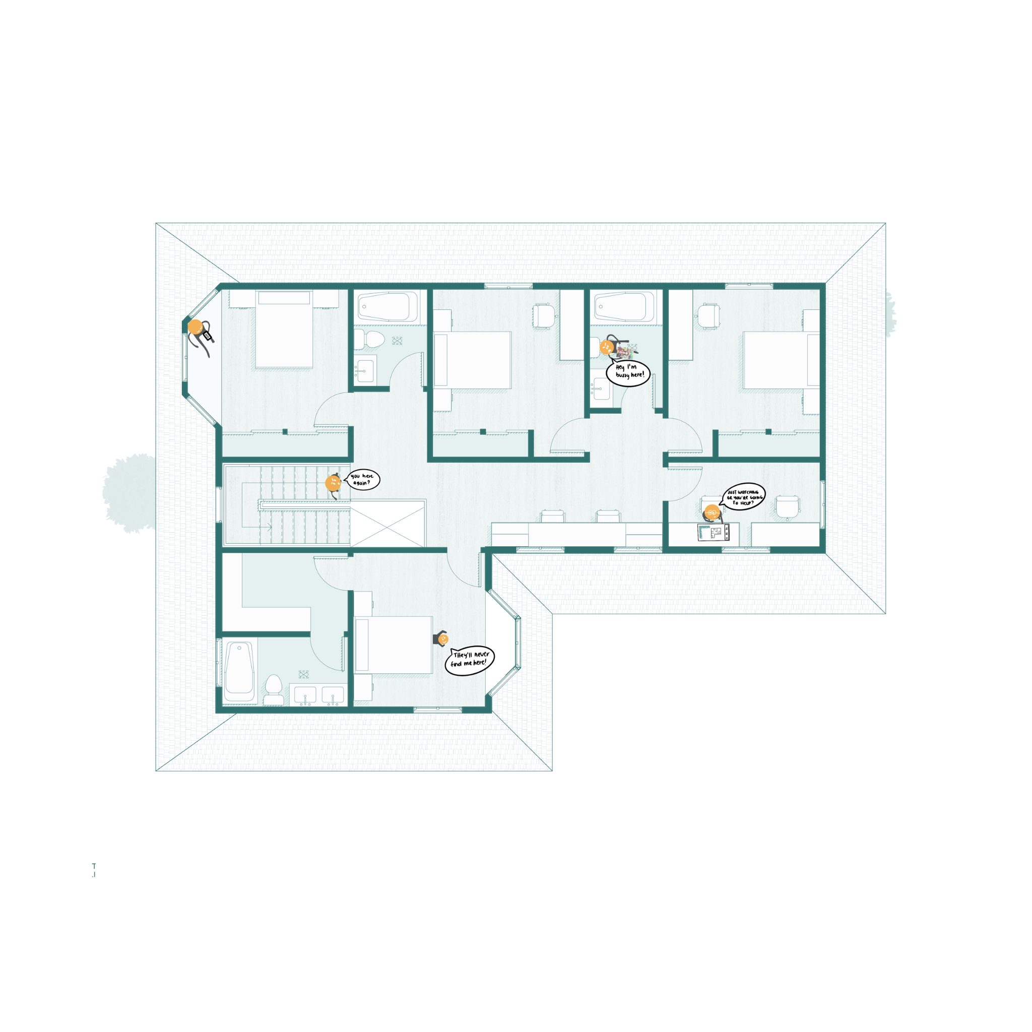 Our design solution also caters to the family's desire for privacy and personal retreats. On the second floor, we have thoughtfully allocated individual sanctuaries for each family member. Each child is granted their own playground in the form of bedrooms, while the parents luxuriate in a carefully Integrated master suite. Furthermore, to facilitate shared experiences and moments of togetherness, we have created a harmonious communal space—a family room or study area—where the family can converge and engage in activities that strengthen their familial bonds. This careful balance between functionality and privacy culminates in a home that harmoniously accommodates the family's desire for collective gathering areas and individual tranquility.